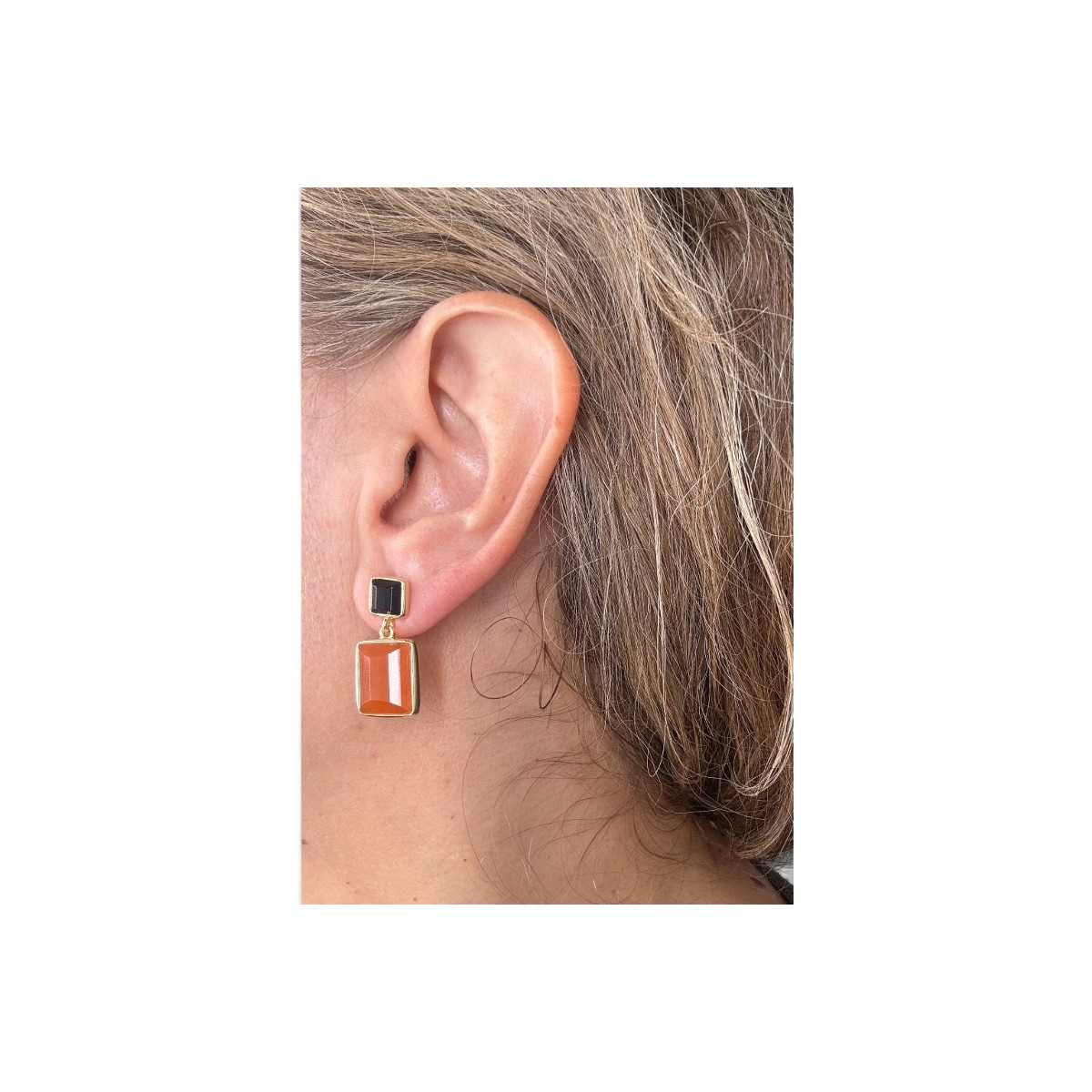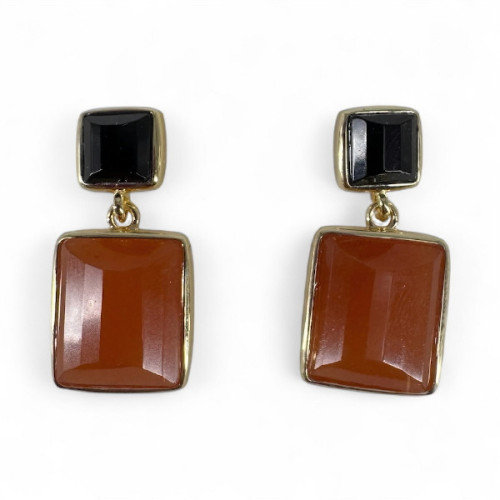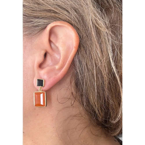 Pendientes colección Alba de Duran Exquse realizados en plata bañada en oro con onix cuadrado y aventurina roja rectangular