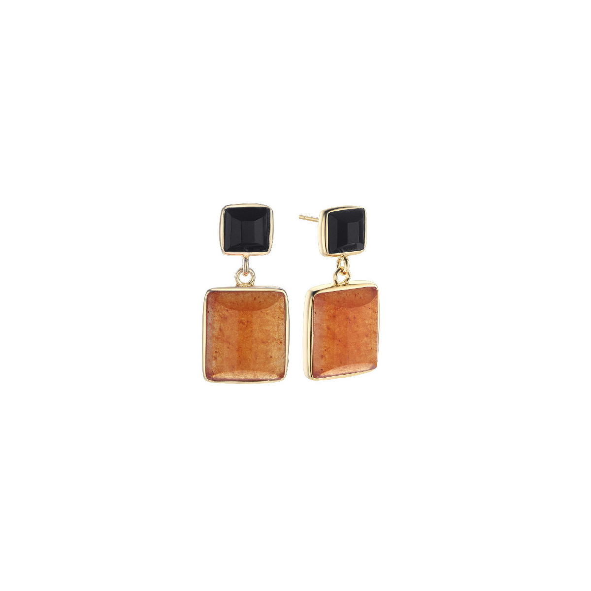 Pendientes Alba, plata, onyx y aventurina roja, facetas especiales, dorado, 2,5 cm