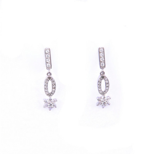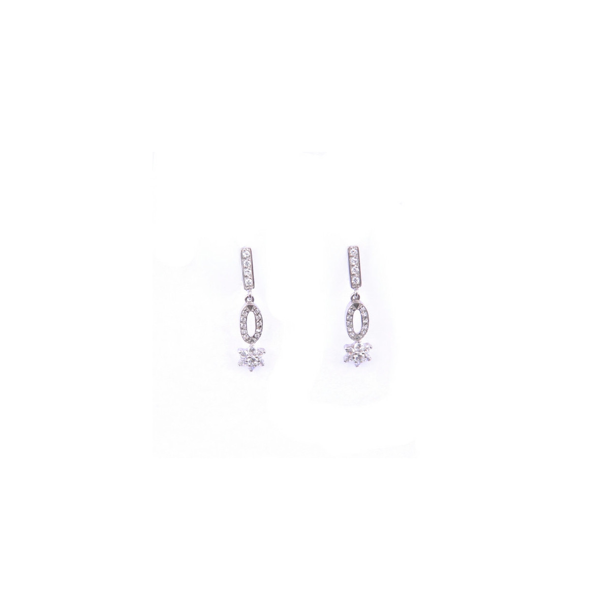 Pendientes de oro blanco de 18 quilates con zirconitas. Cierre de presión. Acabado de rodio.