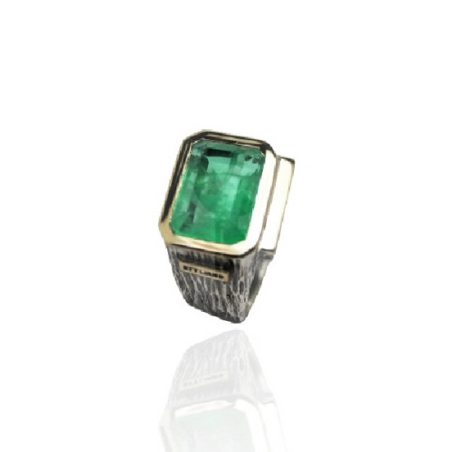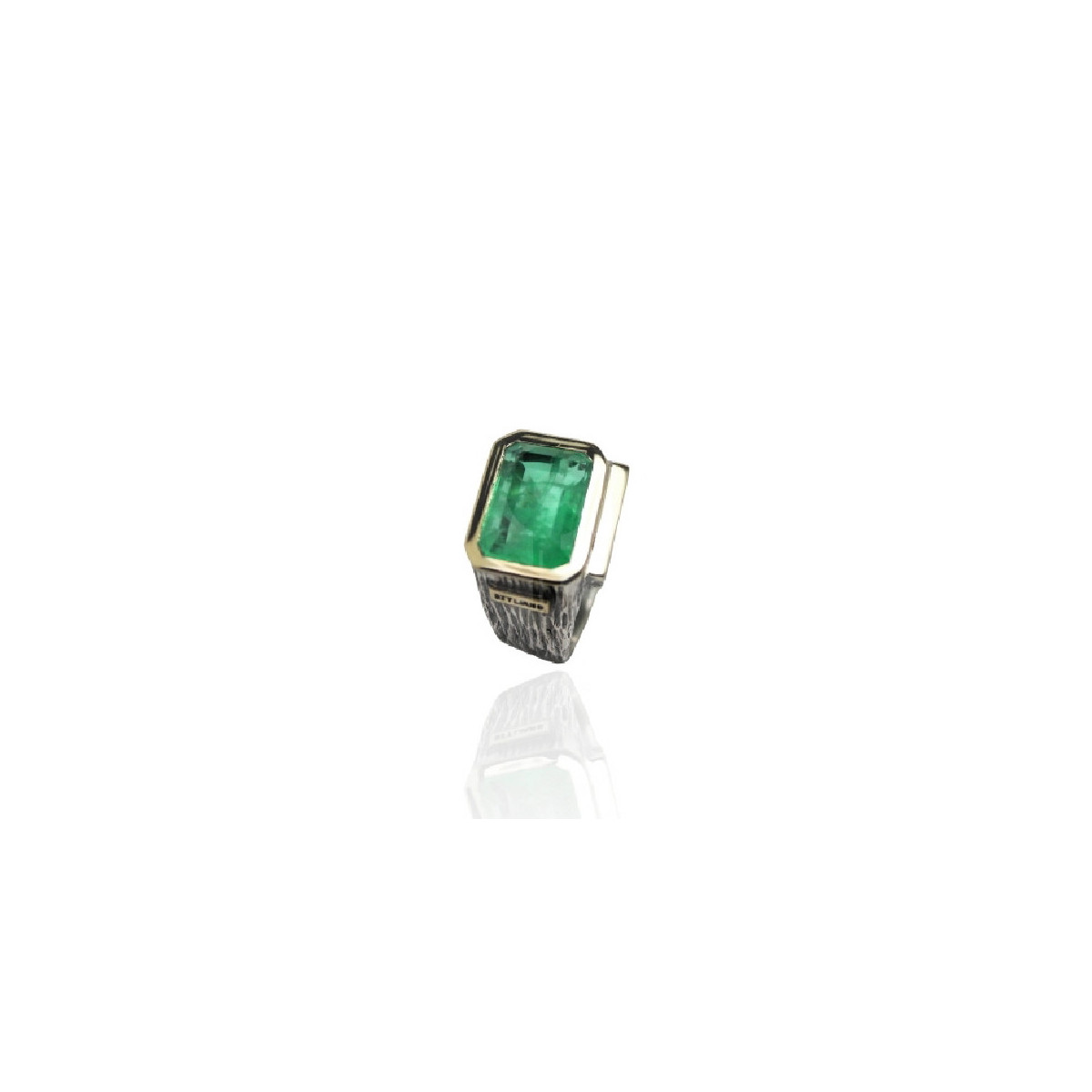 Anillo de plata de ley 925 y oro 9k con doblete de cuarzo color esmeralda