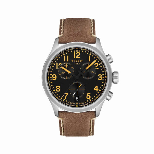 ¡El Tissot Chrono L se une a la familia Tissot XL con un diámetro de 42 mm! Inspirado en el Chrono XL, este nuevo reloj es ideal para quienes buscan un cronógrafo deportivo y elegante, con tecnología suiza y estilo moderno. El movimiento cronógrafo de cuarzo G10.212 proporciona precisión y robustez. Además, el reloj es hermético hasta una presión de 10 bar (100 metros/330 pies) y ofrece una visibilidad en condiciones de poca luz garantizada por el revestimiento Super-LumiNova® de las agujas en forma de aguja. Las correas y brazaletes se pueden intercambiar fácilmente gracias al sistema de cambio rápido de correas de Tissot, lo que permite al propietario elegir entre una amplia gama de correas Tissot compatibles y personalizar su reloj según su estado de ánimo o la ocasión. Descubra este reloj cronógrafo de 42 mm con esfera negra y agujas e índices amarillos en contraste, completado con una correa de cuero y pespuntes en contraste.